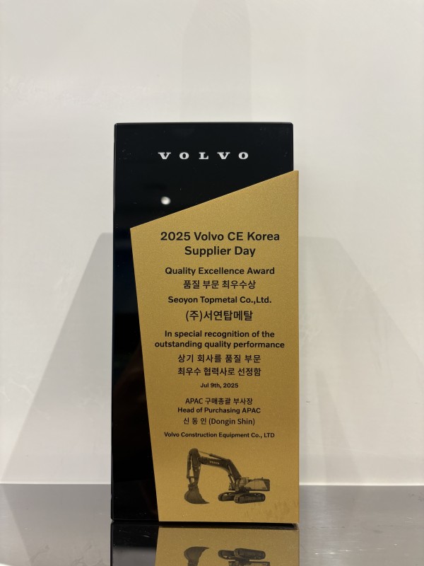2025년 7월 9일, Volvo CE Korea 품질 부문 최우수상을 수상하였습니다.