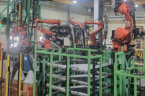 제품 생산을 위해 JIG 및 CO2 & SPOT ROBOT 설치자동화 LINE구성